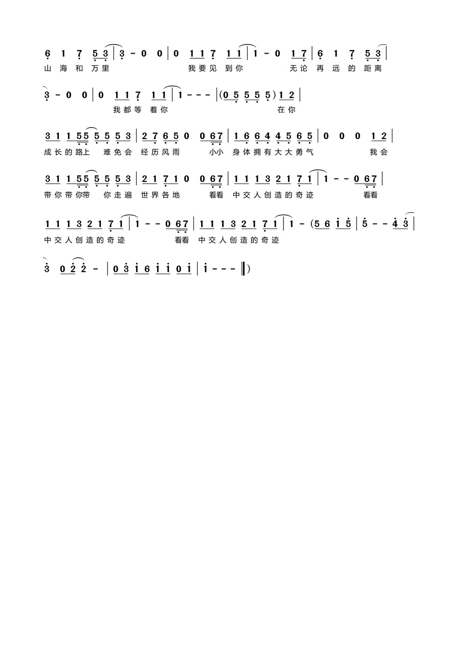“我會(huì )帶你帶你帶你走遍世界各地,看看中交人創(chuàng )造的奇跡”是《Love Song》的結束語(yǔ),更是整首歌的點(diǎn)睛之筆。它是一句莊嚴的承諾,既是對孩子的承諾,更是對交通強國建設的承諾,表達出中交人對中交事業(yè)的強烈自豪感和使命感!